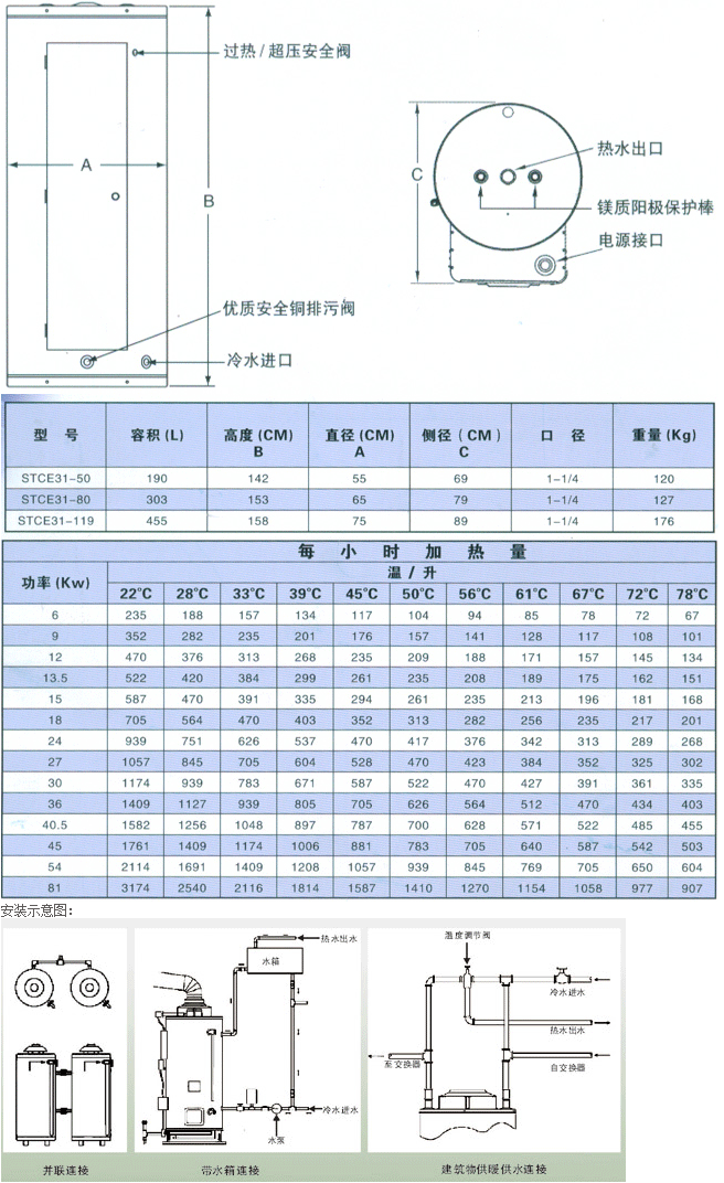 ●過熱/超壓安全閥 本款所有型號的熱水器均在側面或頂部配有特制的溫度壓力安全閥,使其運行更加安全可靠。